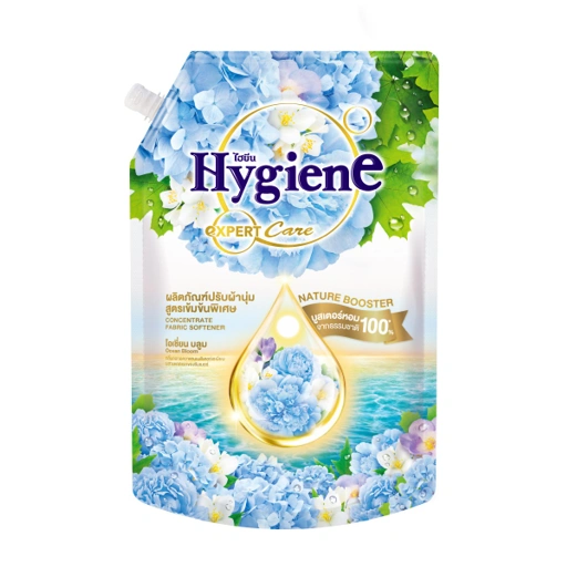 ไฮยีน น้ำยาปรับผ้านุ่ม กลิ่น โอเชี่ยน บลูม ช่วยให้เสื้อผ้ามีกลิ่นหอมสดชื่นยาวนานตลอดทั้งวัน ด้วยกลิ่นจากการสกัดดอกไม้สวนริมทะเลเมดิเตอร์เรเนียน ความหอมที่บริสุทธิ์และสดชื่นเหมือนคุณเพิ่งซักเสร็จใหม่ เพิ่มความสดใสและความหอมที่ติดทนนานให้กับเสื้อผ้าของคุณ