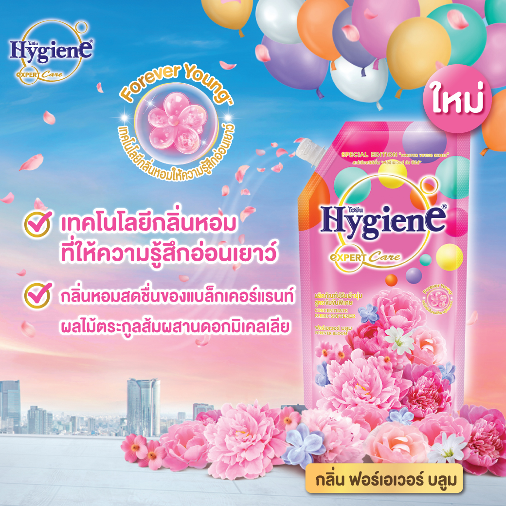 เทคโนโลยีกลิ่นหอม Forever Young ที่จะบูสท์ความหอมสดใส รู้สึกอ่อนเยาว์ เพิ่มความมั่นใจในการสวมใส่เสื้อผ้า โดยไม่เพียงแค่ให้กลิ่นหอมที่ติดทนนาน แต่ยังบำรุงผ้าของคุณให้คงความนุ่มนวลอยู่เสมอ