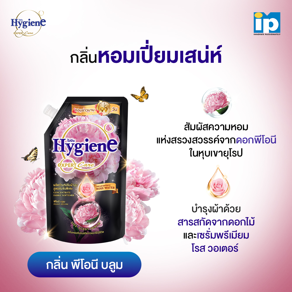 ไฮยีน น้ำยาปรับผ้านุ่ม กลิ่น พีโอนี บลูม สัมผัสกลิ่นหอมเปี่ยมเสน่ห์จาก ดอกพีโอนีในหุบเขายุโรป ที่ให้ความหรูหรา อ่อนโยน และโรแมนติก เสมือนได้เดินอยู่ท่ามกลาง ทุ่งดอกไม้แห่งสรวงสวรรค์ ที่อบอวลไปด้วยความหอมละมุน เติมเต็มความรู้สึกสดชื่นและผ่อนคลายในทุกช่วงเวลา