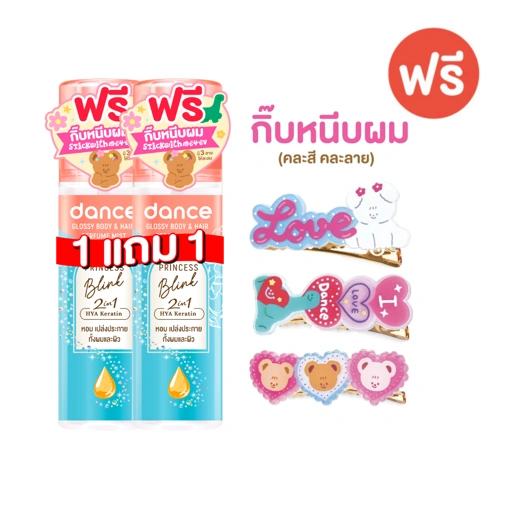 [1 แถม 1] แดนซ์ บอดี้ & แฮร์ เพอร์ฟูม กลิ่น พริ้นเซส บลิ๊งค์ 80 มล. สีฟ้า [แถมกิ๊บหนีบผม คละลาย]